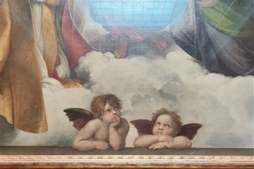 Raffaelovu Sixtinskou Madonu. Paradoxem je, že více než výraz panny Marie jsou známí