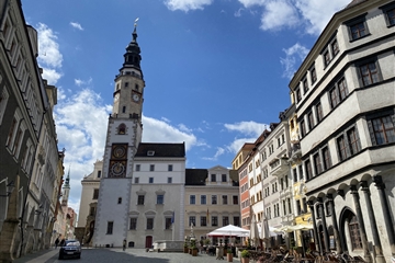 Görlitz (Zhořelec), město rozdělené řekou Nisou na německou a polskou část. Je to architektonický drahokam, který nebyl zničen válkou, a proto dnes slouží jako oblíbená kulisa pro hollywoodské velkofilmy. Má tak velké kupecké domy, že do nich vjedou celé povozy i s koňmi.