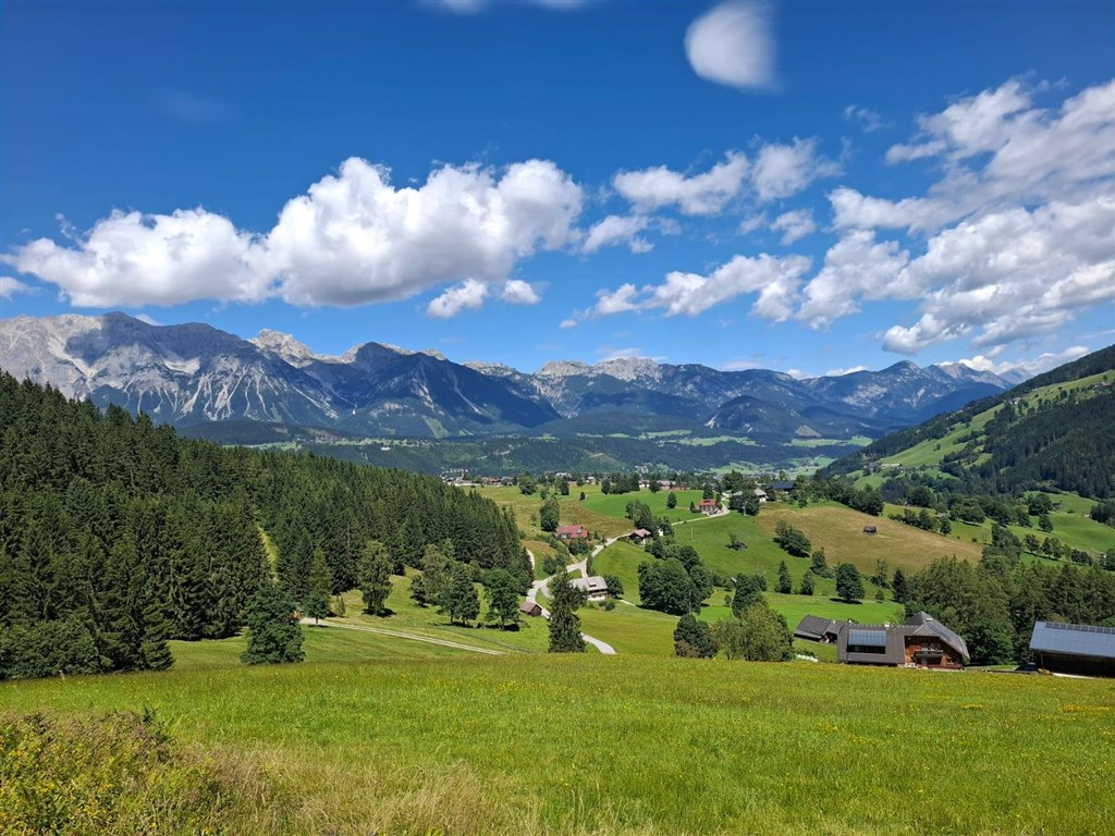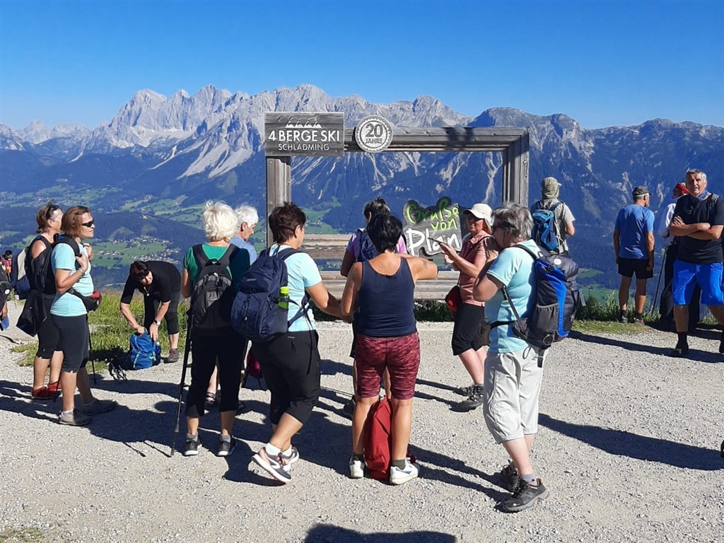 Už od prvního dne pobytu tady přitahují náš pohled vysoké štíty hor v okolí Schladmingu. A dnes je ten den, kdy vyjíždíme lanovkami do horských výšin. Přesněji od výšky 1849 m n.m. na vrchol Hochwurzen. Počasí nám přeje a celý masiv Dachsteinu vč. majestátního vrcholu Hoher Dachstein 2995 m n.m. máme před sebou jak na dlani. Chvíli se zasníme, co nás čeká zítra. Dnes máme před sebou různě náročné varianty, aby si každý přišel na své. Tzv. kochači volí trasu jen maximálně po planinu Roßfeld. Na zadýchání i toto stačí a z planiny jsme opět odměněni úžasnými výhledy dolů do údolí Obertal a na vrcholky hor nad ním. Někdo se vrací, většina pokračuje dál přes sedlo Latterfussatel. Ale i tato skupina se po nějaké době dělí na ty, kdo sejdou cestou zpátky ke spodní stanici lanovky a převezou se na hotel našim busem a na ty, co nikdy nemají dost a zvolili si trasu ještě delší, ještě náročnější, ale jak se všichni shodneme u dobrého jídla po našem výkonu, trasu, co fakt stála za to.