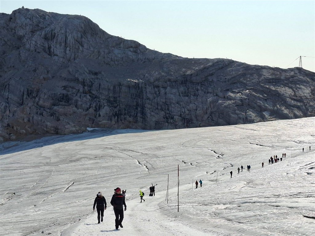 Nahoře nás čekají panoramatické výhledy na horské vrcholy Rakouska a bystré oko horala dohlédne dokonce až na Šumavu do České republiky či na druhou stranu do Slovinska. Naše zážitky umocňují atrakce, jako je nový Dachsteinský nebeský žebřík, Dachsteinský visutý most (nejvýše položený v Rakousku) se schodištěm do nikam a ledový palác. Ale to není vše. Po prozkoumání okolí vyráží celá naše skupina neohroženě po Halštatském ledovci kolem úpatí Hoher Dachsteinu na chatu Seethalerhütte. Cesta je trochu náročnější v tajícím sněhu a ledu, a také trochu nezvyklá pro naši hlavu, že se uprostřed prázdnin procházíme po sněhu.